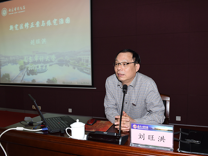 南京审计大凯发长、党委副书记刘旺洪教授应邀为全体领导干部作了“新宪法修正案与依宪治国”专题报告。刘教授从宪法的基本理念、新宪法修正案的重大意义、新宪法修正的主要内容以及加强宪法实施,推进依宪治国等几个方面对本次报告的主题进行了深入解读与辅导,对我校全体党员干部全面领会、准确把握宪法修正案的核心要义和精神实质,进一步增强宪法意识,弘扬宪法精神,维护宪法权威,推动宪法实施,具有积极的促进作用。