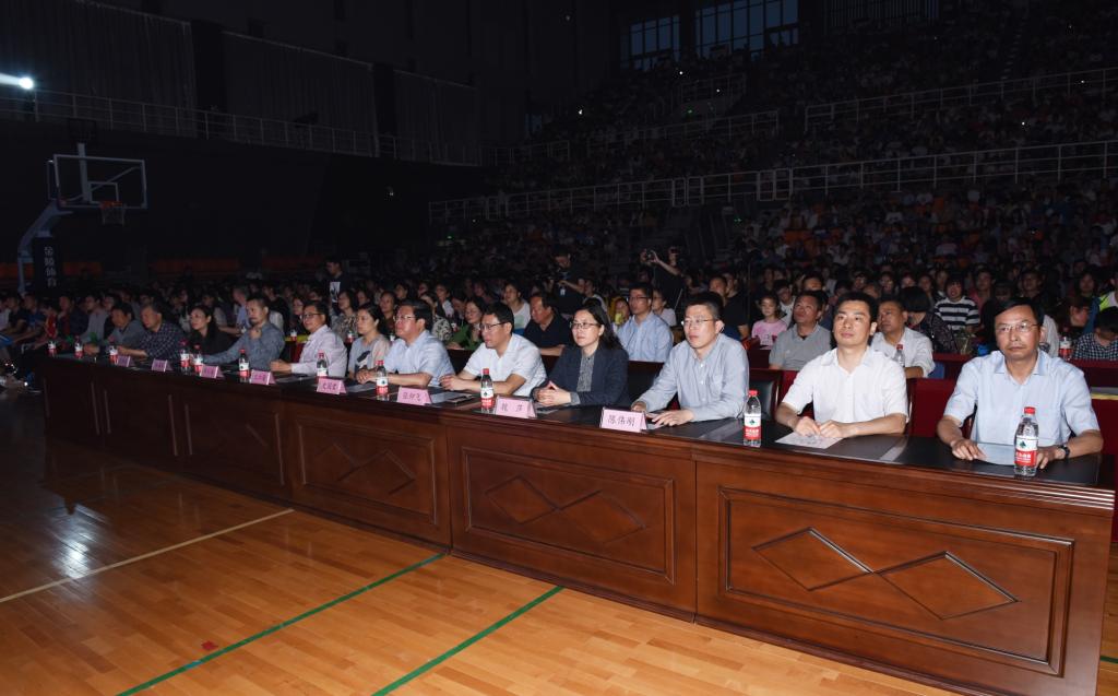 5月27日晚,由江苏省教育厅、财政厅主办的2018年高雅艺术进校园拓展项目----“阳光路上”南京财经大学大学生艺术团专场演出在我校天健苑?体育中心举行,校党委书记史国君、副院长张仰飞与现场三千多名学子一同观看了这场洋溢青春活力的高雅艺术盛宴。江苏省教育厅体卫艺处副处长王红蕾和南京财经大学副校长华仁海、东南大学艺术教育中心主任洪海军、河海大学团委书记陈伟刚、南京财经大学艺术教育中心主任段伟伟等兄弟院校的领导与嘉宾应邀共同观看了演出。