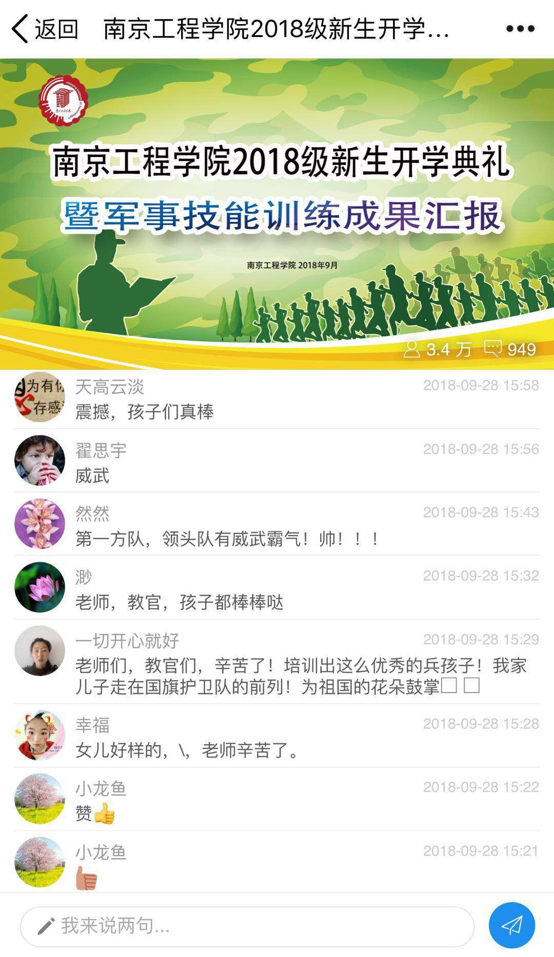 今年的开学典礼暨军事技能训练成果汇报会首次采用现场网络直播的方式,至下午三点,观看直播的人数已超过3万人次,观众纷纷为凯发和师生点赞,好评连连。