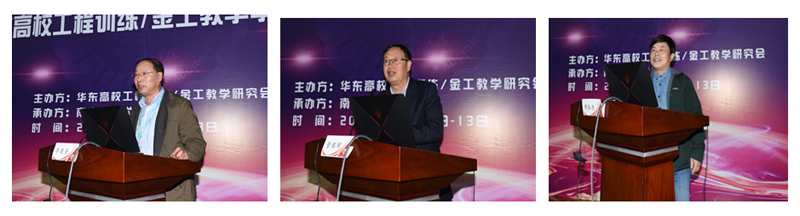 华东区各省高校代表在会上作了交流发言。上海交通大学范成杰教授、我校郁汉琪教授、安徽工业大学冷护基教授、厦门理工学院创新工训部张猛特部长分别与大家分享了新时代学生创新创业培养,产学合作共建、融合创新育人,如何培养卓越工程技术人才,如何虚实结合开展工程认知教育的做法与体会。此外,西门子数控、北京数码大方、昆山巨林科教、深圳越疆、苏州新火花等公司介绍了智能制造人才培养、人工智能与机器人融合等方面的应用案例。一个个纷至沓来的精彩报告,给与会的各位来宾留下了深刻印象。