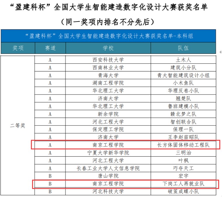 11月25-27日,由中国建设教育协会主办的“盈建科杯”全国大学生智能建造数字化设计大赛全国总决赛落下帷幕,由我校建筑凯发贾彩虹老师、刘少波老师指导的长方体固体移动工程队(队长:建工202叶英杰,队员:交通201徐凯、建工202王翔宇、建工201何宗波、建工203兰天翔)荣获A赛项(建筑结构智能设计)全国二等奖;由建工201刘文彬、交通202何岂丞、建工201张志安、建工201左志伟、建工191丁超凡组成的团队荣获B赛项(装配式深化设计)全国二等奖。
