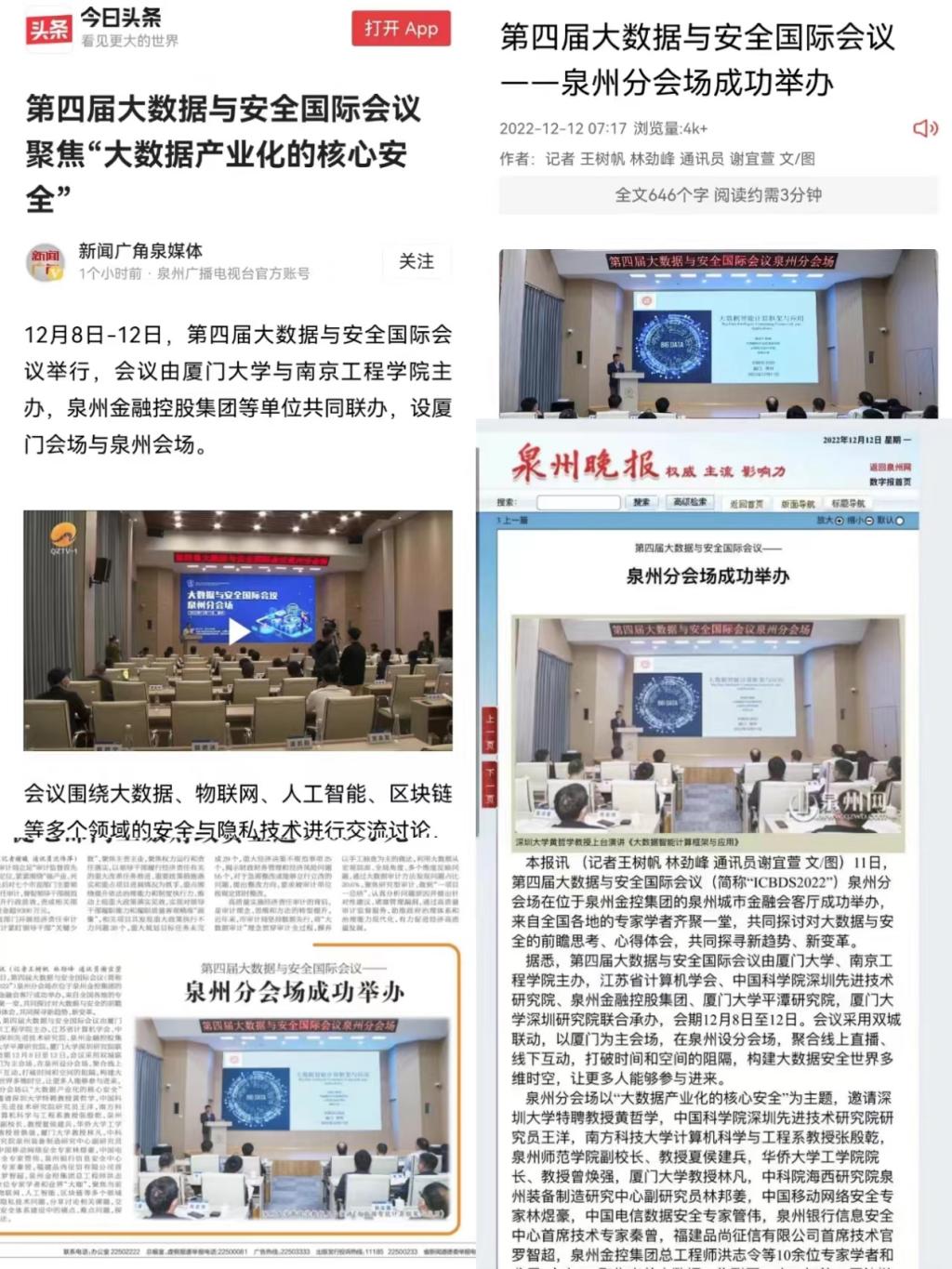 本届大数据与安全国际会议吸引了众多大数据及信息安全技术领域的专家和学者前来参与,受到了当地媒体的争相报道。