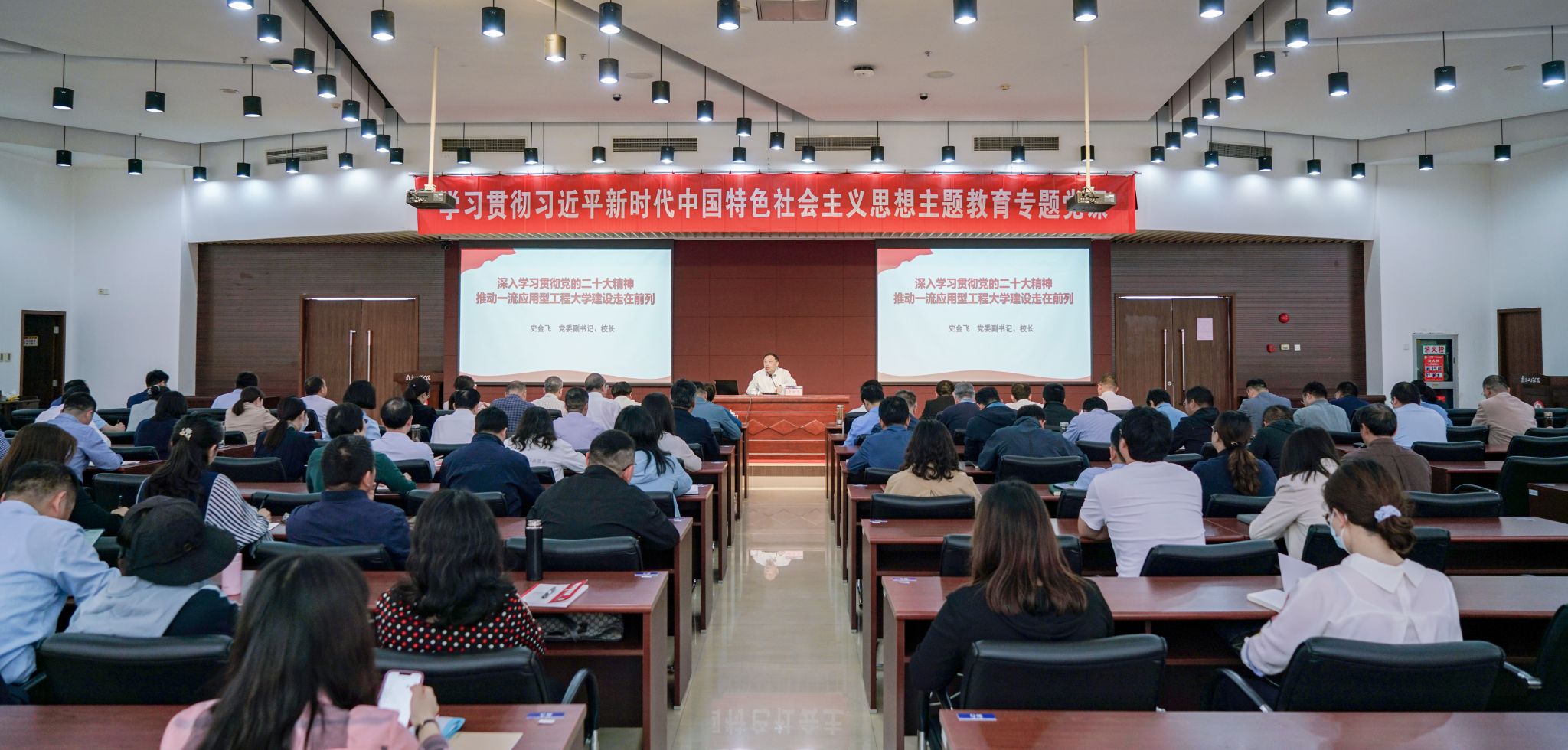5月5日下午,校党委副书记、院长史金飞以“深入学习贯彻党的二十大精神 推动一流应用型工程大学建设走在前列”为题,在至勤楼·行政中心多功能厅为党员干部讲授学习贯彻习近平新时代中国特色社会主义思想主题教育专题党课。