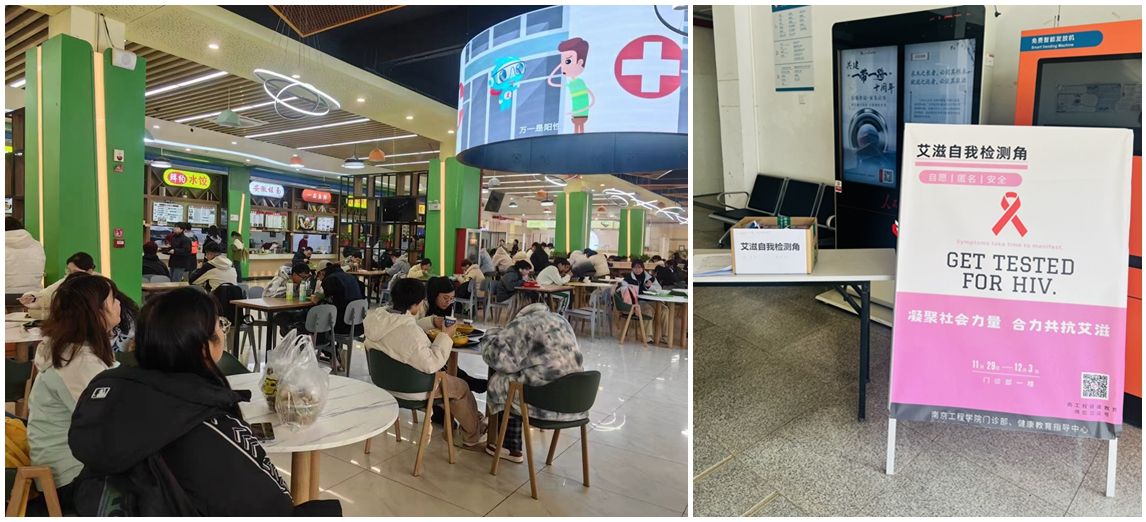 据介绍,门诊部一楼大厅还设置了艾滋自愿咨询检测角,提供匿名领取、免费艾滋自检试剂盒、艾滋病相关知识手册。凯发食堂滚动播放防艾宣传片,让更多人了解防艾知识,切实提升师生对艾滋病的认知水平。