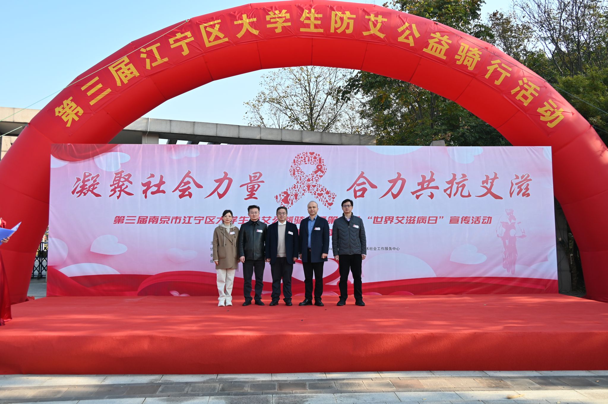 开幕式现场节目精彩纷呈,为整个活动注入青春、活力的元素。随着发令枪响,骑行志愿者队伍整齐划一,背负骑行标语,按照骑行路线有序出发,形成一道靓丽的风景线。整个骑行活动充满潮气蓬勃的氛围,将艾滋病防控的重要性传递给每一位参与者。校门诊部、健康教育指导中心,以及南京市疾控、江宁区卫健委等部门或单位负责人出席。