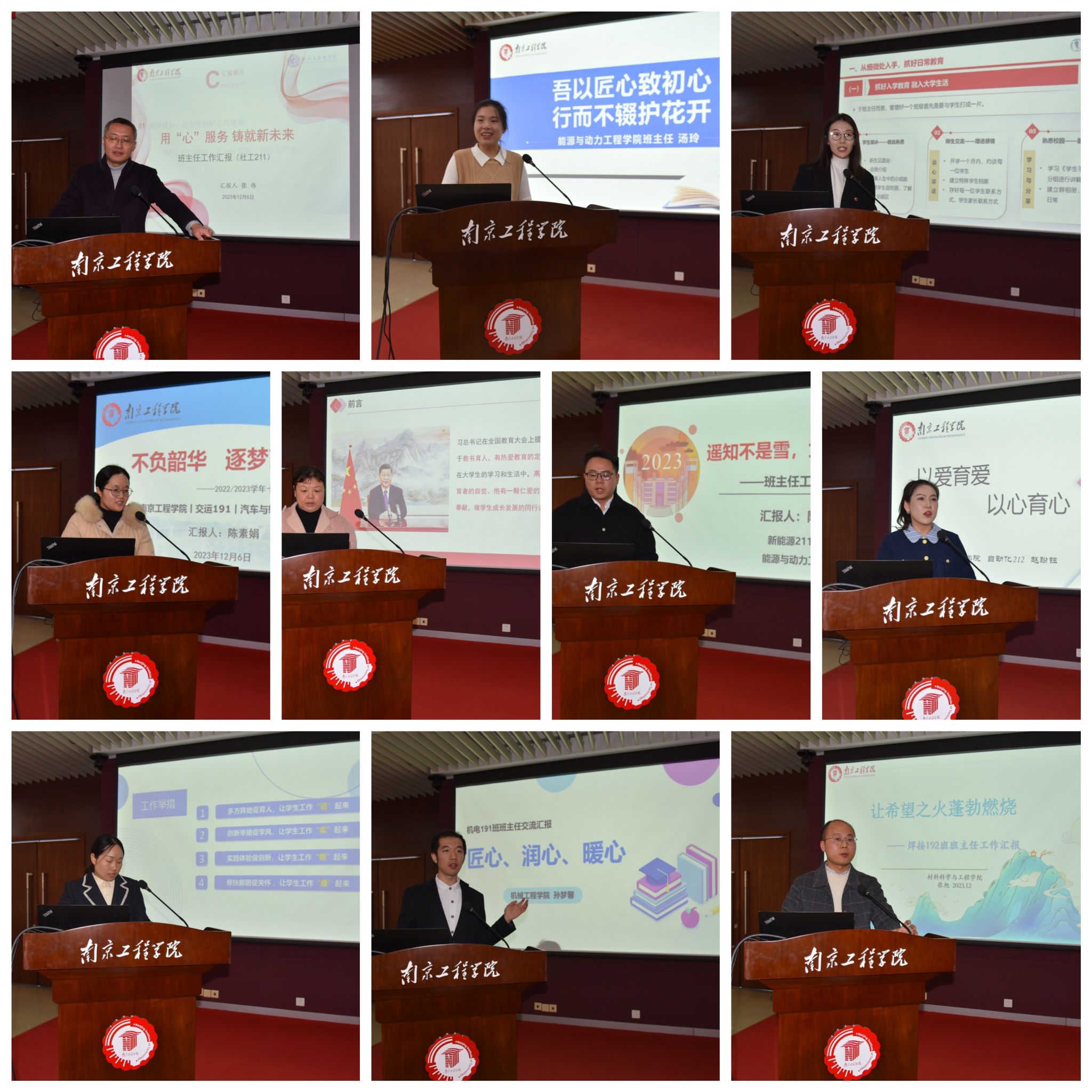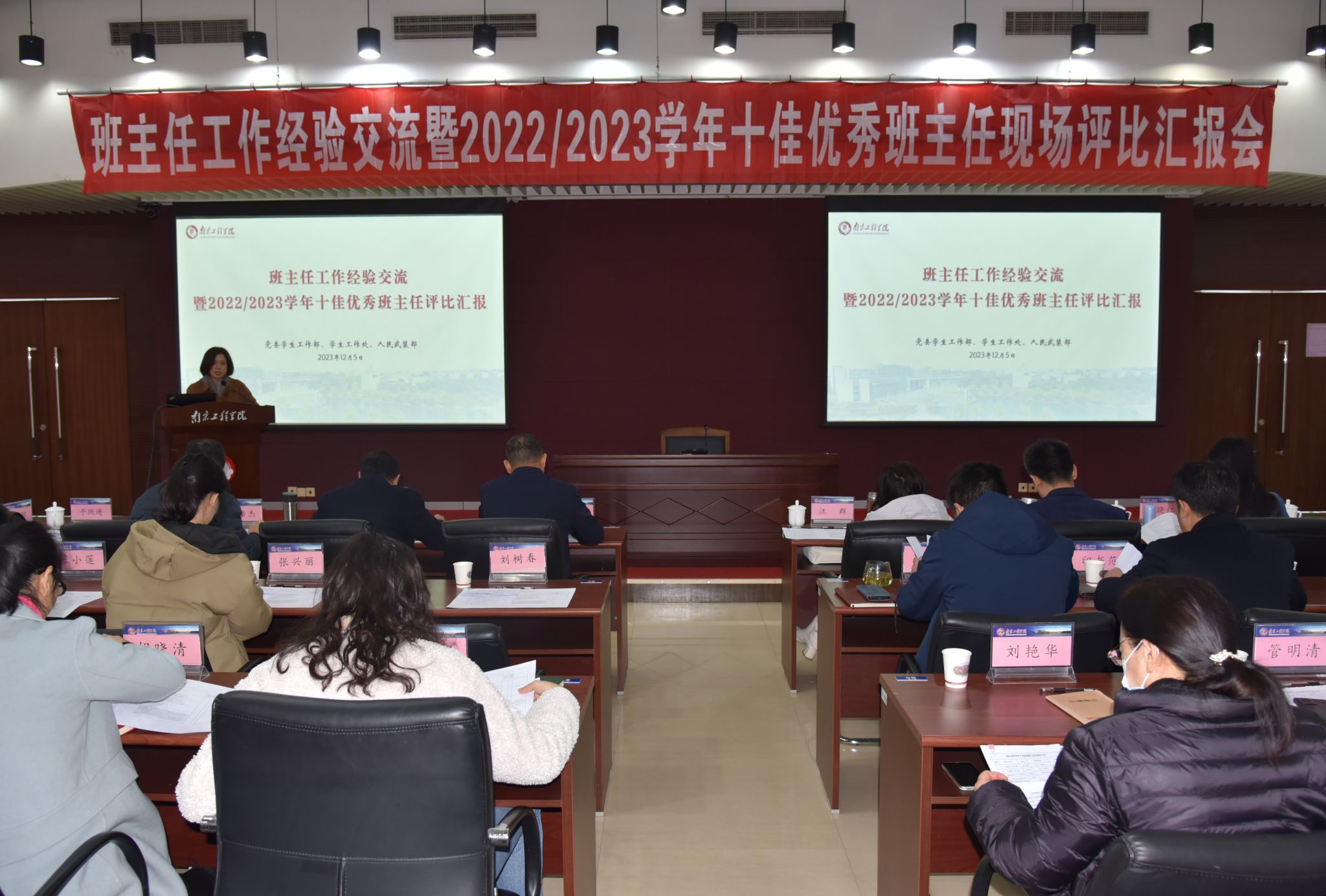 经个人申报、二级学院推荐、专家初评等环节,20名十佳班主任候选人从2022/2023学年681名班主任老师中脱颖而出,进入现场评比环节。汇报现场,老师们围绕习近平总书记关于青年工作重要论述,结合班主任工作职责,从思想引领、班级建设、学风引导、生涯规划指导等方面,展示了工作亮点和成绩,分享了班级工作的思路举措和育人感悟。精辟的教育理念、独到的工作方法、深厚的育人情怀充分展现了我校班主任队伍扎实的专业素养和崇高的师德风范,赢得了专家评委和与会人员的广泛赞誉。青年班主任贺威老师聆听了现场交流后,在分享环节动情地表示,将以优秀前辈为榜样,以学生为中心,用心、用情、用爱做好学生的知心人、引路人,实现育人初心和职业价值。