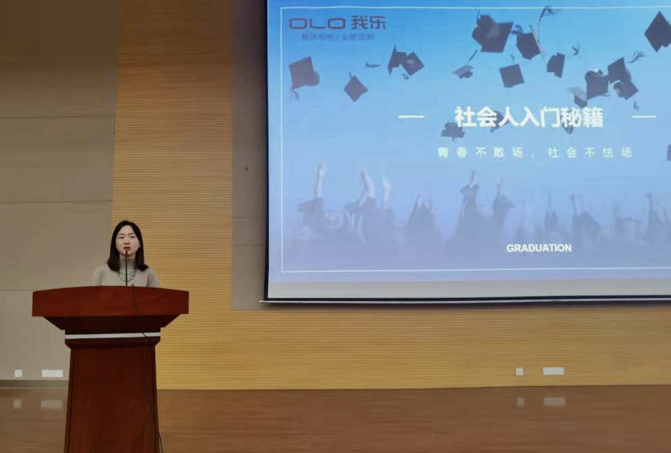 会上,学院邀请了南京市我乐家居股份有限公司的人资经理赵晶晶,从企业的角度为毕业生们做职前教育指导。她就毕业生的角色转变、简历的组成、优秀简历案例三方面为同学们进行了详细的讲解分析。视传182班的张霖同学说:“赵老师的讲解很实用,学院老师的建议很贴心,为我们应届毕业生扫除了就业盲区,规避了就业弯路。我们会冷静分析和认识当今的就业形势,了解就业相关问题,努力实现高质量就业。”