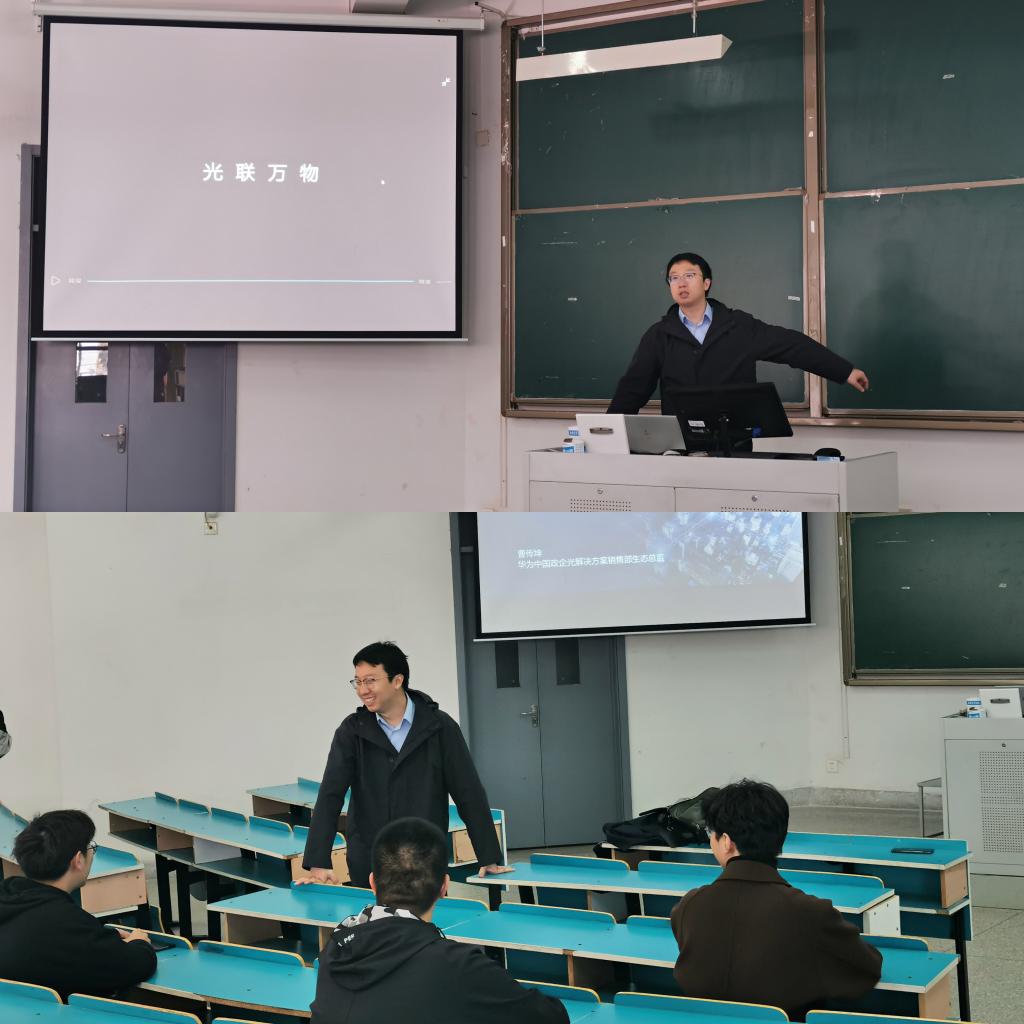 张穗总经理基于信通学院相关专业,从社会市场实际需求出发,用通俗易懂的语言为同学们讲解了如何与客户沟通网络建设需求,如何提供网络设计方案,如何提升与客户的对话能力和会议宣讲能力,并与同学们就通信专业的人才需求和发展前景进行互动,他以自身成长经历为同学们上了精彩的“职业生涯第一课”,鼓励同学们成长不是一蹴而就的,要不断更新自己,在工作岗位上刻苦勤恳,坚持不懈才会有更大的进步、更大的收获。“此次专题讲座,让我了解到,求职不仅只是简单的找工作,更要去了解企业背景、岗位要求和合作式人才培养计划。”光电182的吴同学表示对自己未来的职业发展有了更深的思考。