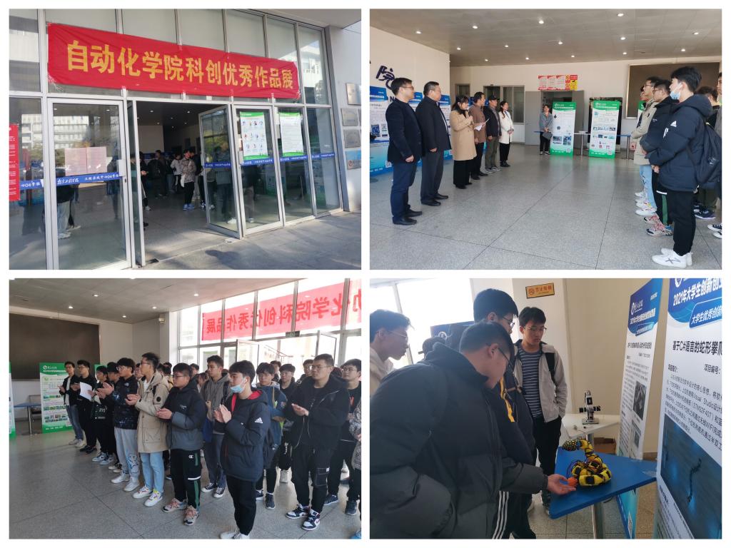 为展现自动化学子的创新风采,发挥优秀学子的模范带头作用,激发同学们参与科技创新的热情,11月24日中午,自动化学院2021年大学生科创优秀作品展于学院一楼大厅开幕。学院全体党政负责人、关工委教师、学工办教师和部分学生代表参加了开幕式。