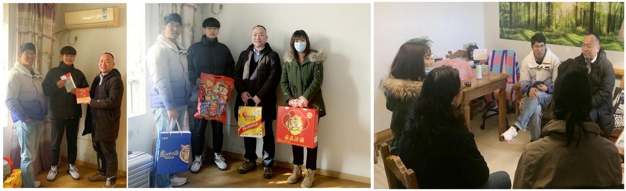 2021级陕西咸阳籍学生吴朝文同学,因疫情需在南京租房过年,18日上午,学院学生工作负责人及学工办辅导员一行来到吴朝文同学的临时住所,在表达关心问候的同时也为他送上了生活必需品,叮嘱他要注意安全,也要做好心理调节,有困难随时和学院取得联系。此外,学院学生工作负责人还为他送上《大国追梦》的书籍和防疫物资,希望他坚定理想信念,勇于战胜挑战。学院一行前往家庭经济困难同学家中进行深入交流与慰问,送去了生活用品和学习用品,积极开展宣传国家资助政策,仔细询问学生在家中的生活与学习情况,鼓励学生克服困难,在逆境中自强不息、刻苦学习,争取以优异的成绩回报父母、回报凯发、回报社会。