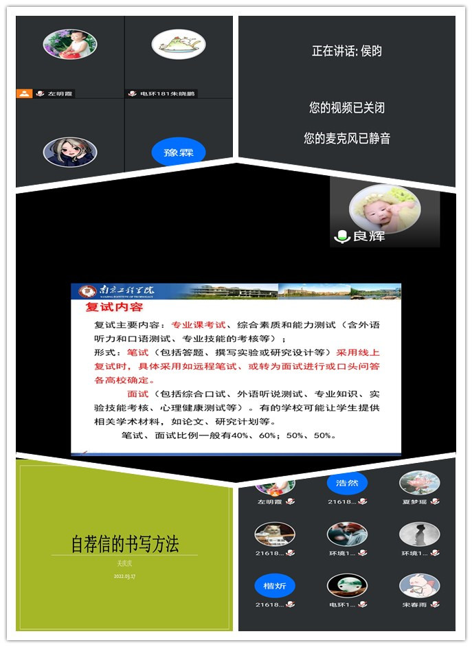 为更好地帮助2022届毕业生提高考研复试成功率,3月17日,环境凯发通过腾讯会议平台举办“匠心逐梦,全力以‘复’——考研复试调剂指导会”,该院党总支副书记侯昀、考研博士指导团全体成员,学工办老师以及正在准备参加考研复试的2022届毕业生参加了此次会议。