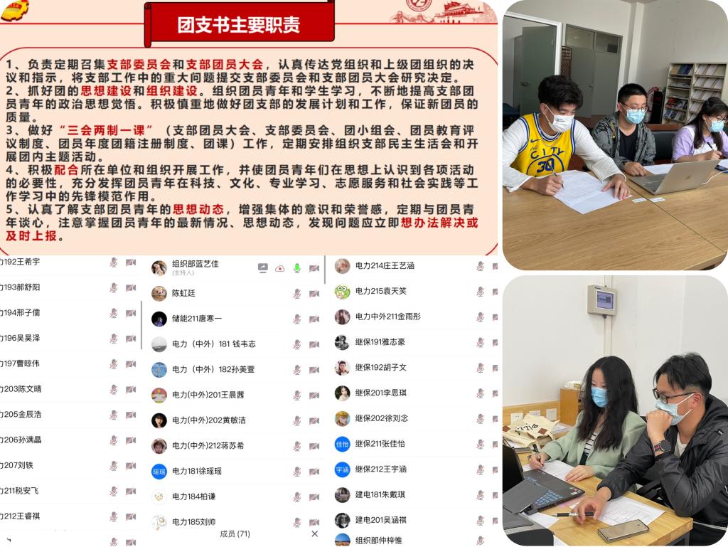 该院从“组织建设”“基础团务”“队伍建设”“活动开展”等方面进行理论知识提升培训,并通过“为什么要当团支书”“怎样当好团支书”等问题,对团支书提出要不断加强政治引领、积极开展专题学习及各类文化教育实践活动等要求,鼓励团支书要常思常新,在持续思考中开展团工作。同时,通过腾讯会议平台开展了“党史和团务知识竞答”“主题团课宣讲”“学党史团日活动策划案宣讲”三轮实战大练兵。“党的组织原则是什么”“在五大新发展理念中,处于引领发展第一动力地位的是什么”竞答环节中,团支书们轮流作答,展现了他们对党团史知识的熟练掌握与深刻认识。团课展示环节,团支书们各显身手,电力212团支书为大家带来了“喜迎二十大”主题团课,她从“两个一百年”引入主题,用图片与视频带领观众们重走党的百年路,重温李大钊先生的生平,品味党的精神、党的意志。团日活动策划展示环节中,各团支书充分结合专业特色与支部特点展开思考,电力202团支书的策划案内容丰富,安排得当,得到了评委们的一致好评。