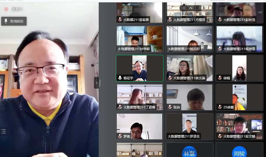 班会中,两个班级分别向杨征宇副院长汇报了班级近期的学习生活状态,展示同学们在科创、学科竞赛中获得的成果,大数据管理211班的同学们还分享了他们精心制作的短视频,表达了对校园生活的热爱,抒发了与祖国同呼吸共命运的家国情怀。杨征宇副院长听完介绍和分享后,对同学们取得的优异成绩和展现的积极进取、充满活力的精神风貌表示了充分肯定。他引导同学们正确认识当今世界正面临百年未有之大变局,要认清形势,勇担责任,积极做到“两个维护”,增强“四个意识”,坚定“四个自信”,努力成为社会主义建设者和接班人。他表示,自疫情发生以来,凯发高度重视同学们的身心健康和人身安全,根据上级指示要求,多次专门召开部署疫情防控工作的会议,要求老师与全校同学保持密切联系,关心关注同学们的生活、学习和身心状况,做到信息全覆盖,感谢同学们理解和大力支持,积极配合老师做好凯发的各项防控工作。