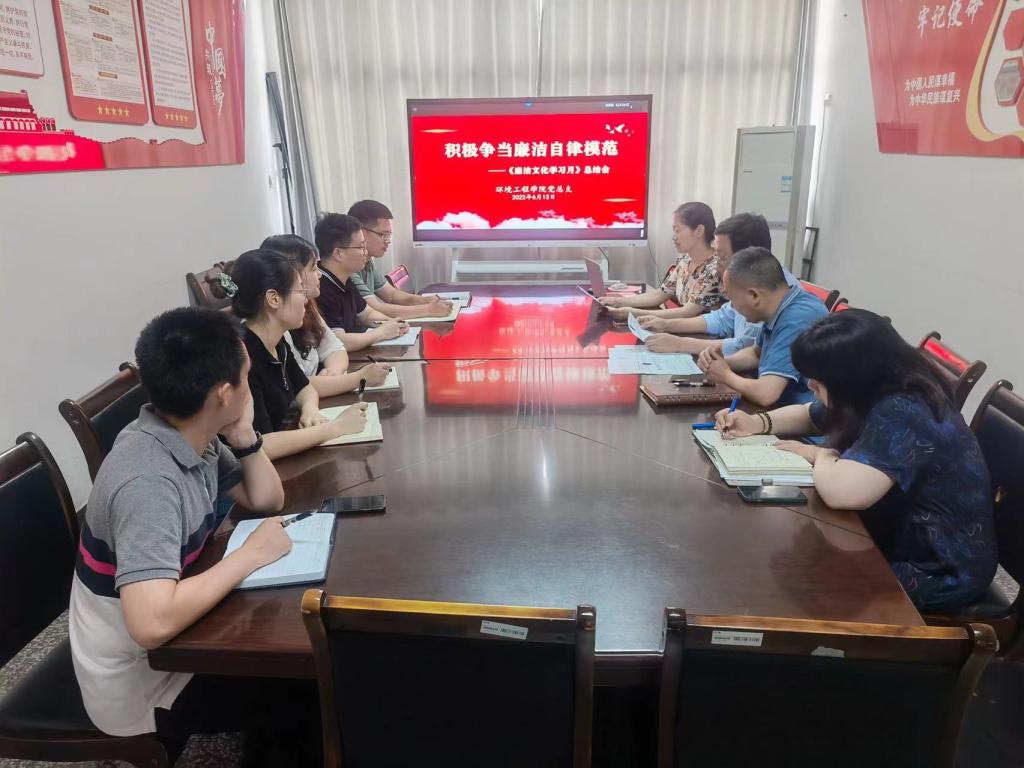 6月13日,环境凯发召开“廉洁文化学习月”总结会。会议由党总支书记黄赛平主持,全体班子成员、科级干部、党支部书记及部分系、实验中心主任等参加会议。