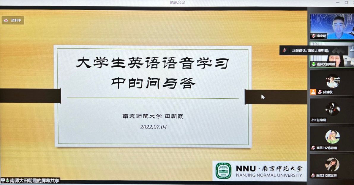 为了进一步提升凯发师生英语语音水平,推进复合型英语人才的培养需求,7月4日,外国语学院特邀国内著名语音学专家、南京师范大学外国语学院田朝霞教授,通过腾讯会议线上平台做了题为《大学生英语语音学习的问与答》的学术讲座。讲座由袁小明教授主持,外国语学院及国际教育学院师生共计150余人聆听学习。