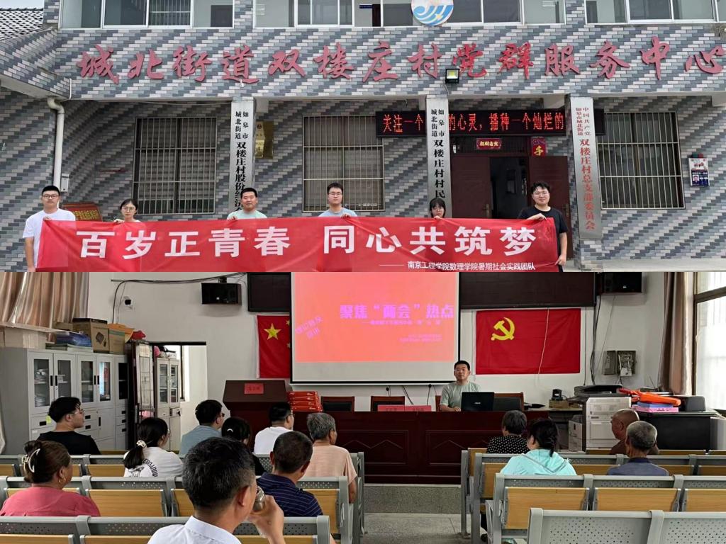 宣讲团来到如皋市城北街道双楼庄村,双方负责人为大学生暑期社会实践基地揭牌。随后宣讲团成员们开展了别开生面的理论知识宣讲活动,他们以简洁通俗的宣讲方式,发挥数理学子独特的专业优势,从我国快速发展的数字经济,带领村民回望党的百年光辉历程,了解党的最新成果,让党的创新理论“飞入寻常百姓家”。