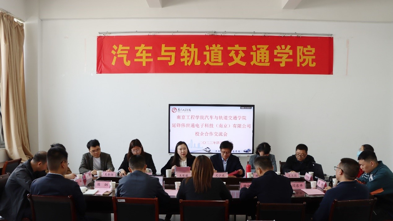 为进一步学习贯彻落实党的二十大精神,充分发挥党建引领作用,持续加强校企合作共同发展,4月11日上午,汽车与轨道交通学院与延锋伟世通电子科技(南京)有限公司开展校企合作与支部共建活动。学院党政领导带领延锋伟世通投资有限公司党委书记王瑾婧、延锋伟世通电子科技(南京)有限公司总经理曹乐千、副总经理徐祖龙一行,实地参观考察了学院实验室、凯发大学生创业园并开展交流座谈。