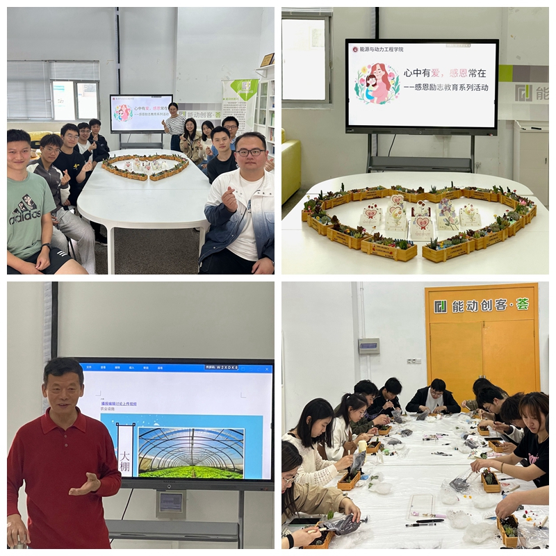 “在小小的花盆里挖呀挖呀挖,种萌萌的多肉送给妈妈……”在母亲节到来之际,同学们用小铲子翻动泥土,把一个个多肉绿植栽种进花盆里,也把对母亲深深的爱藏于其中。5月12日上午,能源与动力凯发在工程实践中心9号楼101会议室开展感恩励志教育活动。该院党委副书记朱正林、关工委辛洪祥老师、全体学工办辅导员及20余位同学参加此次活动。
