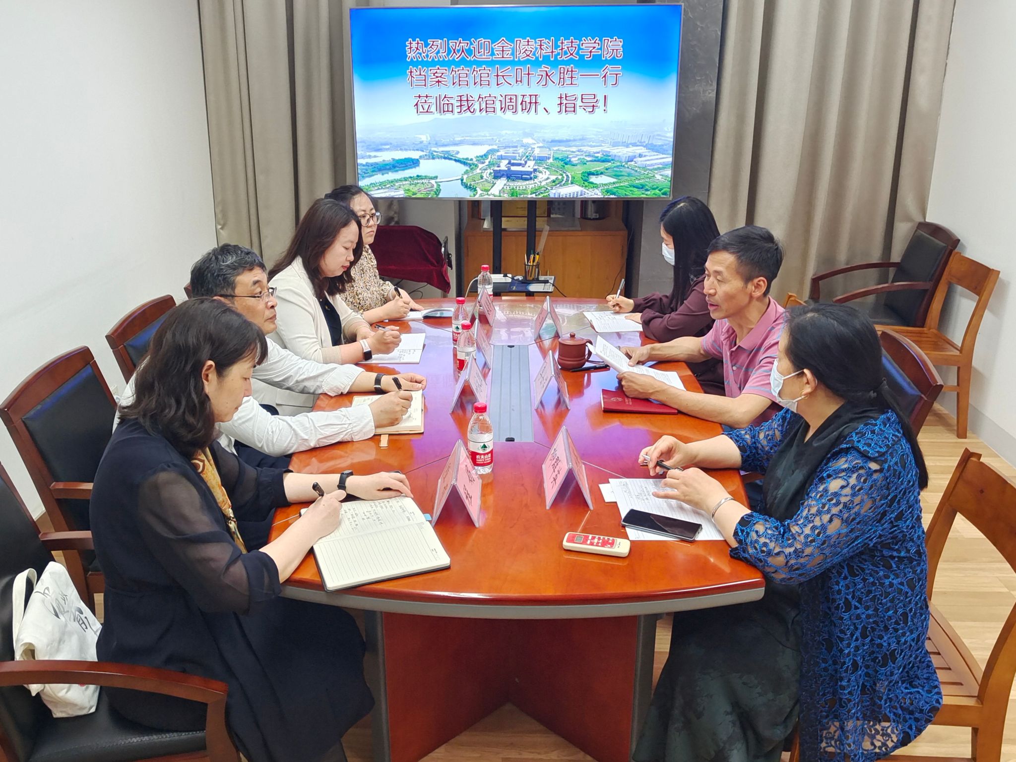 5月17日上午,金陵科技学院档案馆馆长叶永胜一行四人来我校档案馆调研。校档案馆馆长李士芹、档案一室主任柳群英及相关工作人员进行了热情接待。