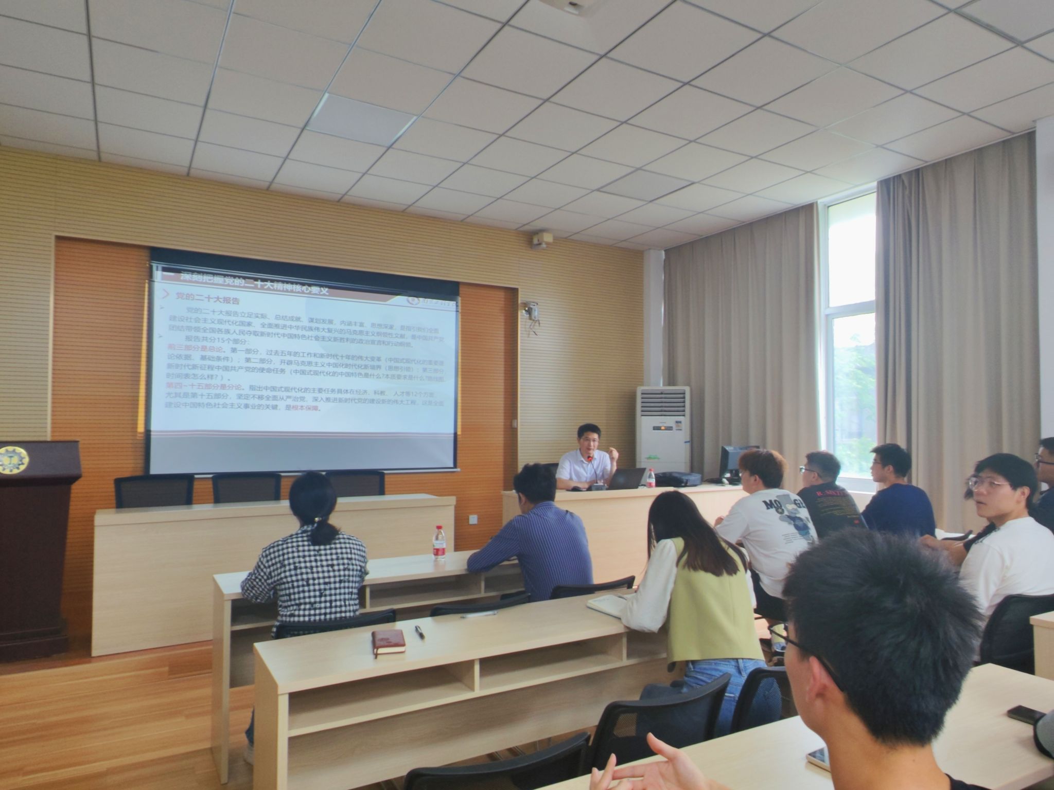 朱松青部长结合党的二十大报告,提纲挈领地从报告整体结构、一个主题、一个中心任务、两个“行”、两个结合、两步走战略、三个务必、三件大事等角度剖析了党的二十大报告的深刻内涵和精神要义。他说,青年是祖国的前途、民族的希望、创新的未来,朱部长带领在场师生精读党的二十大报告中的青年部分,并鼓励广大青年要立志做有理想、敢担当、能吃苦、肯奋斗的新时代好青年。朱部长结合党史以及习近平总书记关于青年的重要论述,通过邓稼先、王进喜、谢小玉、黄文秀等鲜活的人物事迹,为党员同学们描画出新时代好青年的具体模样。“智能制造是制造业支撑中国式现代化的应有之义”,朱部长结合智能制造发展,从科教兴国战略出发,指出要坚持人民至上、高端化智能化绿色化、自立自强以及制造业数据价值创造,形成智能制造中国特色理论体系,在国际舞台上讲好中国智能制造新故事。