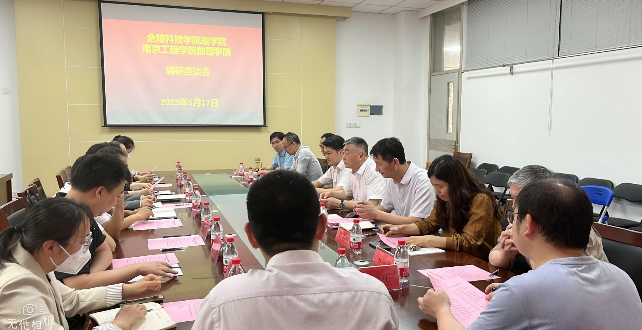 5月17日,金陵科技学院理学院张国印院长一行来我校数理学院走访交流,专题调研本科教育教学审核评估相关工作,学院党总支书记汪强、副院长崔云康(主持工作)、副院长张康群以及各教研室主任在文理B303会议室热情接待了来宾一行并座谈。