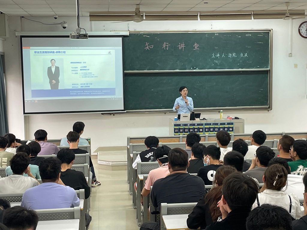 5月17日下午,工业中心品牌活动“知行讲堂”第二十四期活动开讲,中心邀请南京高精齿轮集团有限公司人力资源部经理邵苑,风电事业设备部经理、中心2008届优秀校友张波为2021级学生作职业规划讲座。工业中心主任丁文政主持并做总结发言。